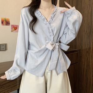 蓝色衬衫【别致漂亮绝美上衣法式/气质甜美小上衣】