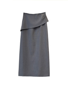 法式两段式褶皱直筒裙女秋季新款高腰小个子后开叉西装中长裙9673