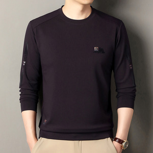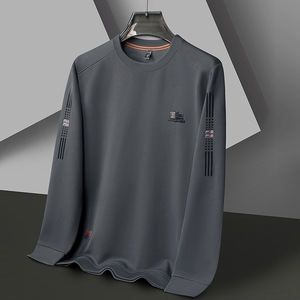 重工艺秋季新款男抗皱长袖t恤圆领休闲宽松百搭打底卫衣一件代发