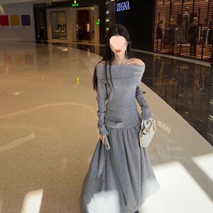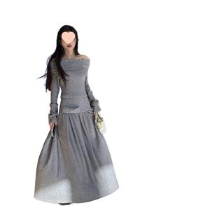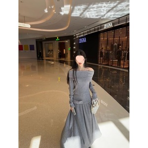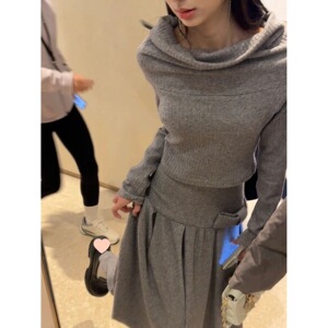 辣妹套装女春秋冬季2025新款露肩一字领毛衣针织衫搭配半身长裙子
