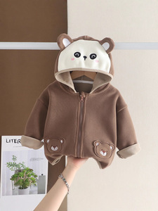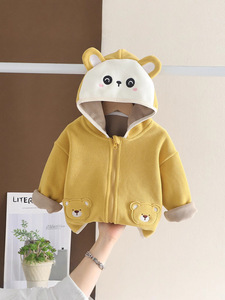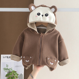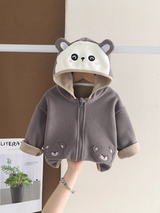 儿童卡通外套2025秋季新款男女童加绒连帽外套宝宝保暖拉链衫批发