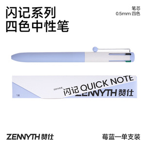 赞仕1085闪记四色中性笔防断墨按键降噪设计无痕笔夹双珠CS刷题笔