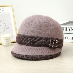 秋冬新款珍珠缎带加绒兔毛妈妈帽显脸小户外防寒帽可围脖保暖套装
