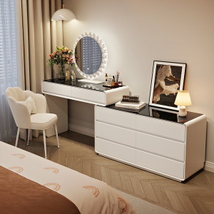新款梳妆台收纳柜斗柜一体卧室侘寂风简约床尾伸缩化妆桌实木现代