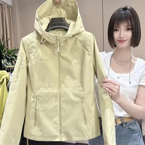 遮肉洋气修身夹克风衣外套女春秋款连帽冲锋衣户外瑜伽棒球服