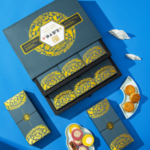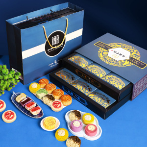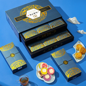 礼遇中秋双层抽屉月饼礼盒18饼14味(典雅蓝)