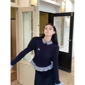 条纹拼接法式气质长袖针织开衫长款半身裙女春秋2025新款时尚套装