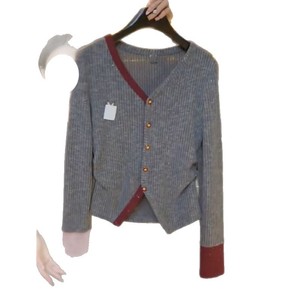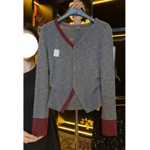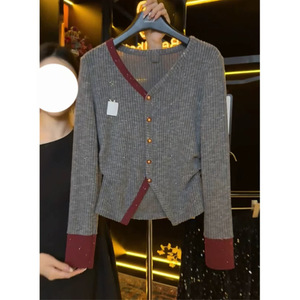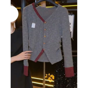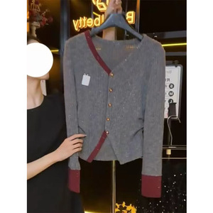 大码秋季新款2025年女装高级感小众撞色V领长袖百搭显瘦针织上衣