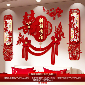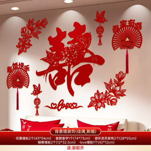 婚房布置套装卧室床头结婚喜字背景墙婚礼拉花新房客厅床头装饰品