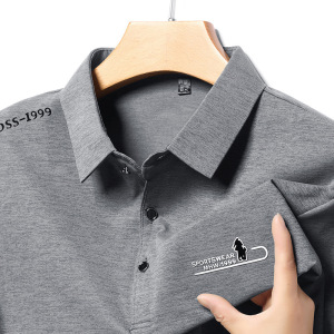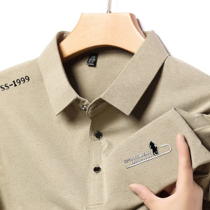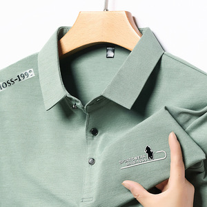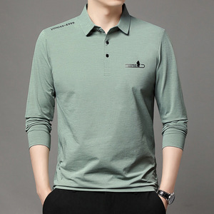 2025秋新款纯色长袖t恤中青年休闲百搭翻领polo衫一件代发长袖T恤
