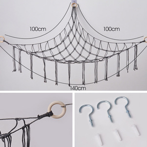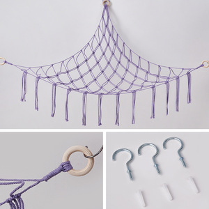 编织毛绒玩具储物网三角墙角网跨境手工编织棉绳儿童玩具收纳网兜