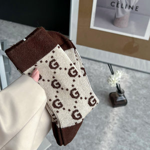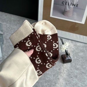 秋冬新款欧货袜子潮牌字母网红复古袜子美拉德穿搭拼色保暖中筒袜