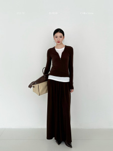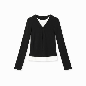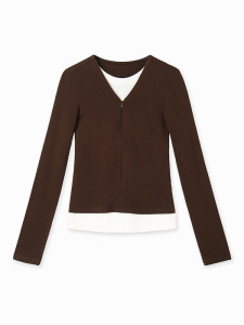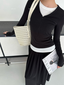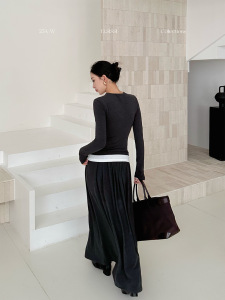ELSISSI2025秋季新款假两件长袖t恤女打底内搭正肩显瘦慵懒风上衣