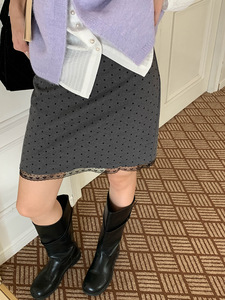 3th Morning 氛围单品 波点蕾丝花边高腰A字半身短裙ZY3318