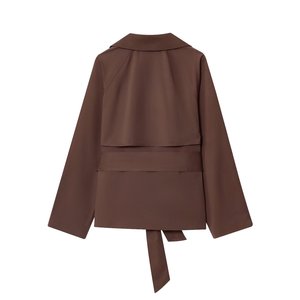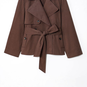 跨境外贸女装2025秋季欧美风翻领长袖配腰带风衣外套女E490174F