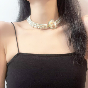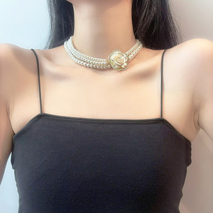 山茶之恋~法式复古山茶花珍珠项链女款轻奢小众设计感锁骨链颈链