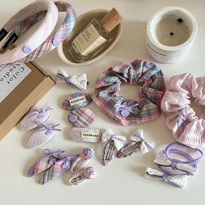 韩版粉色格纹发圈女童亲子款布艺BB夹学生少女简约发箍头箍发饰品