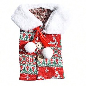 礼晓新款北欧针织麋鹿雪花红酒瓶套圣诞节装饰毛球酒瓶套家居用品