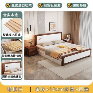 胡桃白宝马床+10cm垫+双抽【全实木造】出口品质