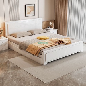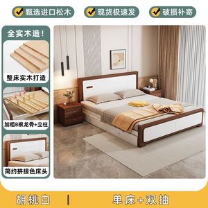 实木床现代简约家用1.8米主卧双人床1.5m单人床1米经济型储物大床