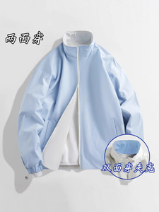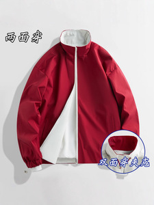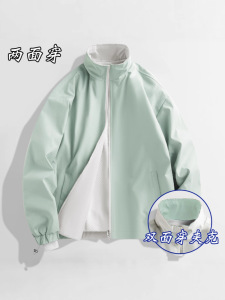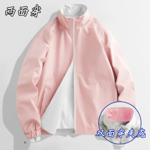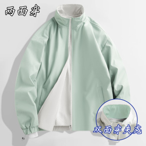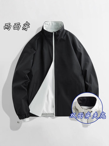 双面穿外套新款春秋百搭潮牌立领宽松简约情侣同款休闲夹克男上衣