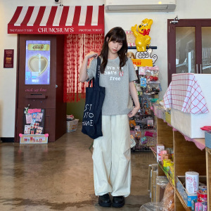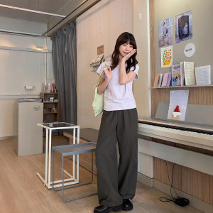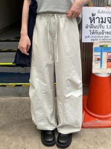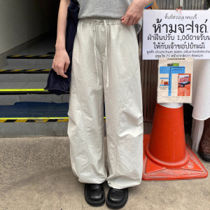 奶兔星球-自制 机能感松紧腰抽绳立体剪裁降落伞裤女夏宽松休闲裤
