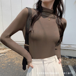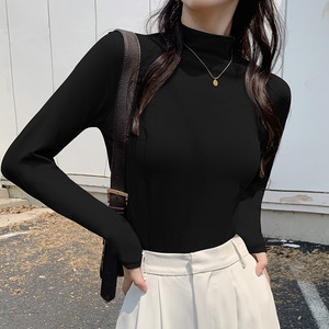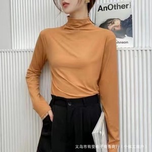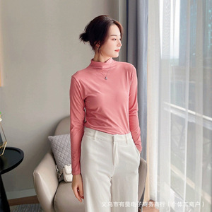 九色半高领打底衫女内搭春秋季长袖面膜衣舒适纯紧身T恤洋气百搭