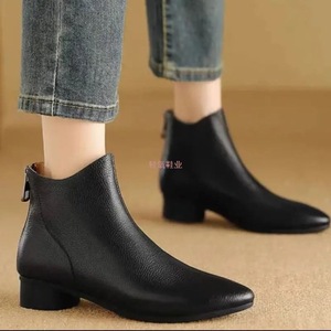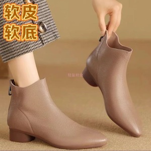 厂家直销2025新款春秋季羊皮单靴短靴软皮女单软底法式靴子百搭
