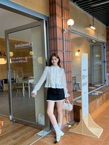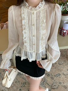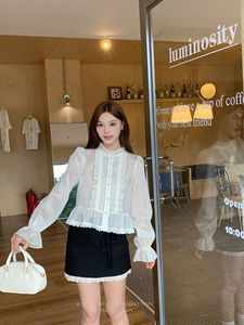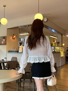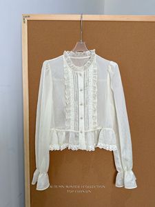 初禾 2025十三行秋miu系名媛木耳边领蕾丝褶皱衬衫衣摆蚕丝小衫女