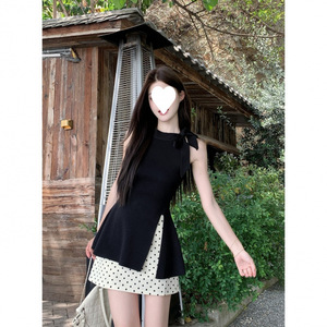 法式挂脖蝴蝶结开叉背心女2025夏季新款设计感小众修身显瘦上衣潮