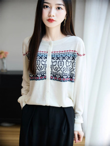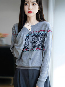 春秋上衣2025新款洋气针织外套外搭秋装时尚提花毛衣开衫女上衣