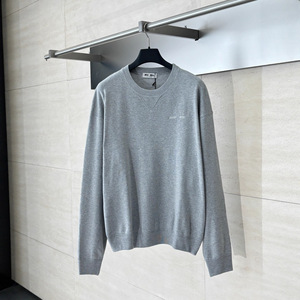 正确版本原标MIU缪家灰色纯色简约圆领套头针织毛衣男女