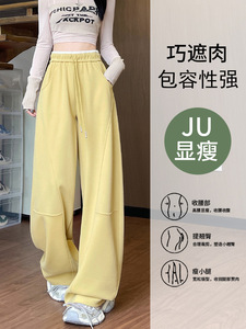 藏青色弯刀阔腿裤女2025新款春秋季卫裤窄版镰刀香蕉直筒运动裤子