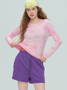 2025秋冬新款瑜伽服女扎染长袖渐变色T恤运动健身宽松圆领套头衫