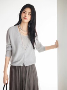 伊*L假两件亮色长袖针织套头衫宽松上衣女2025秋季新款1G8931671