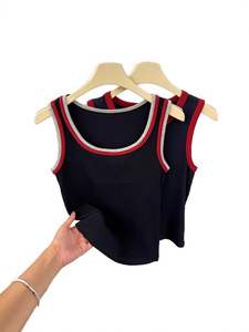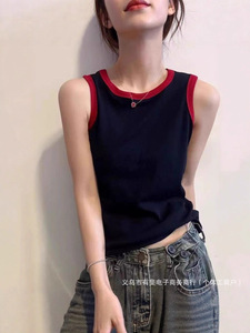 2025款撞色圆领背心389针织吊带小背心女夏外穿短款无袖美背上衣