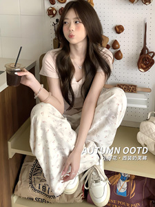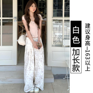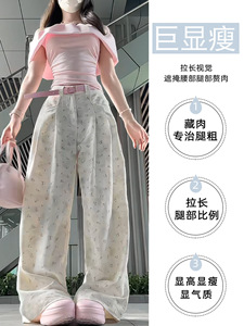 冰丝碎花奶芙西装阔腿裤女夏薄高腰垂感休闲直筒显瘦小个子山本裤