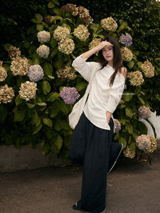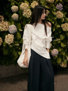 Mega.M十三行极简天丝高级感小衫斜肩不规则一字肩衬衫上衣显瘦女