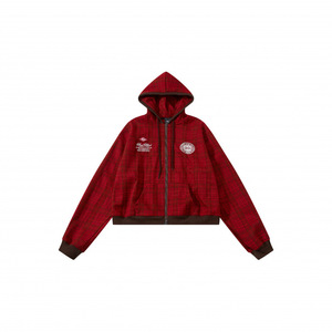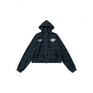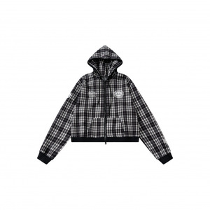 韩国badblood美式宽松复古格子开衫卫衣女运动休闲连帽短外套上衣
