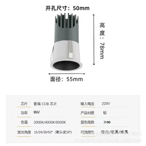 嵌入式天花小射灯led矮吊顶3W5W7W开孔6.57.5cm公分6575mm高显色