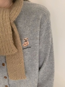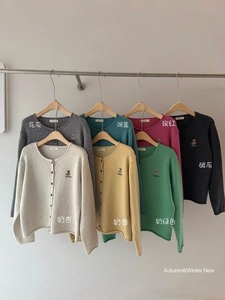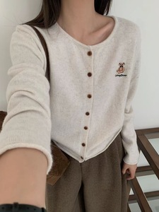 韩系甜美刺绣小熊浣熊绒针织开衫女秋冬新款洋气减龄软糯毛衣外套