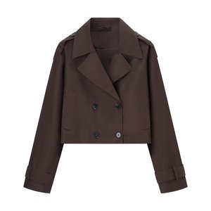 ZA速卖通爆款跨境外贸欧美风女装双襟翻领短款风衣