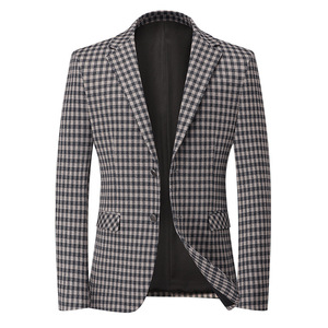 男士春秋高档休闲西服单排两粒扣中青年格子上衣免烫单西外套