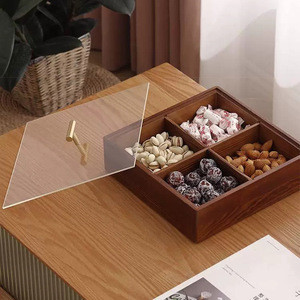松木水果盘月饼盒新中式高级感家用点心零食盘四宫格干果收纳盒