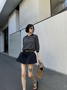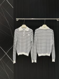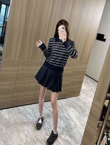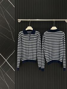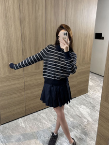 南油带标mm经典polo领针织衫秋季新款韩版精致复古条纹撞色上衣女