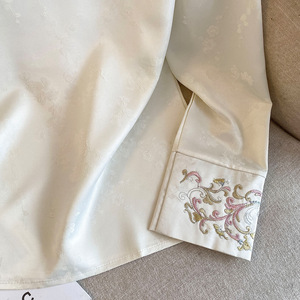 桑蚕丝新中式上衣女高端真丝重工刺绣小衫改良国风提花长袖衬衫秋