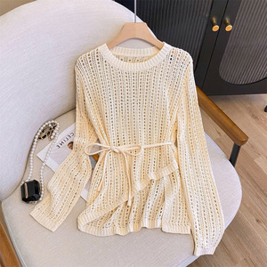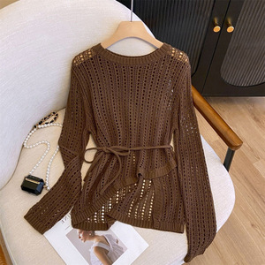 2024夏季薄款慵懒风垂感空调外搭罩衫女圆领不规则钩花镂空针织衫