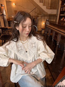 米白色法式提花刺绣衬衫