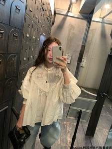 高质感美学25秋季小清新浪漫法式衬衣白色法式提花刺绣衬衫上衣女