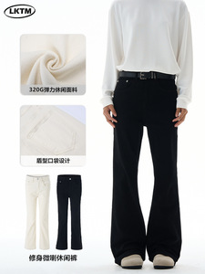 LKTM男装 基础款水洗弹力微喇休闲裤男女cleanfit显瘦百搭长裤潮